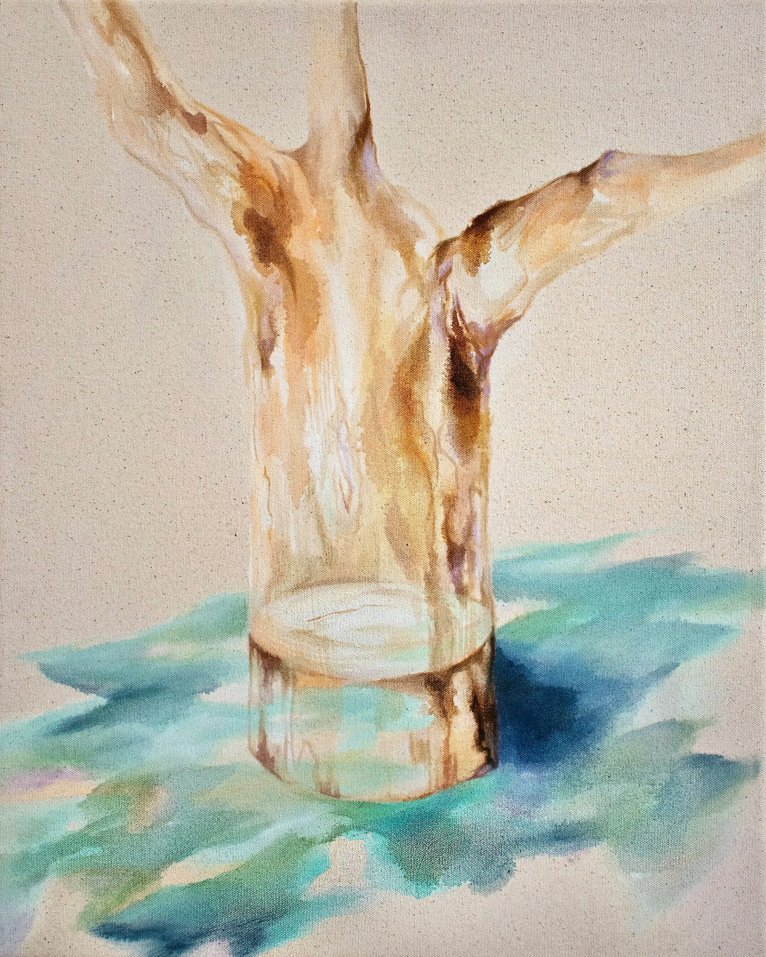oils and lavender spirit on raw canvas